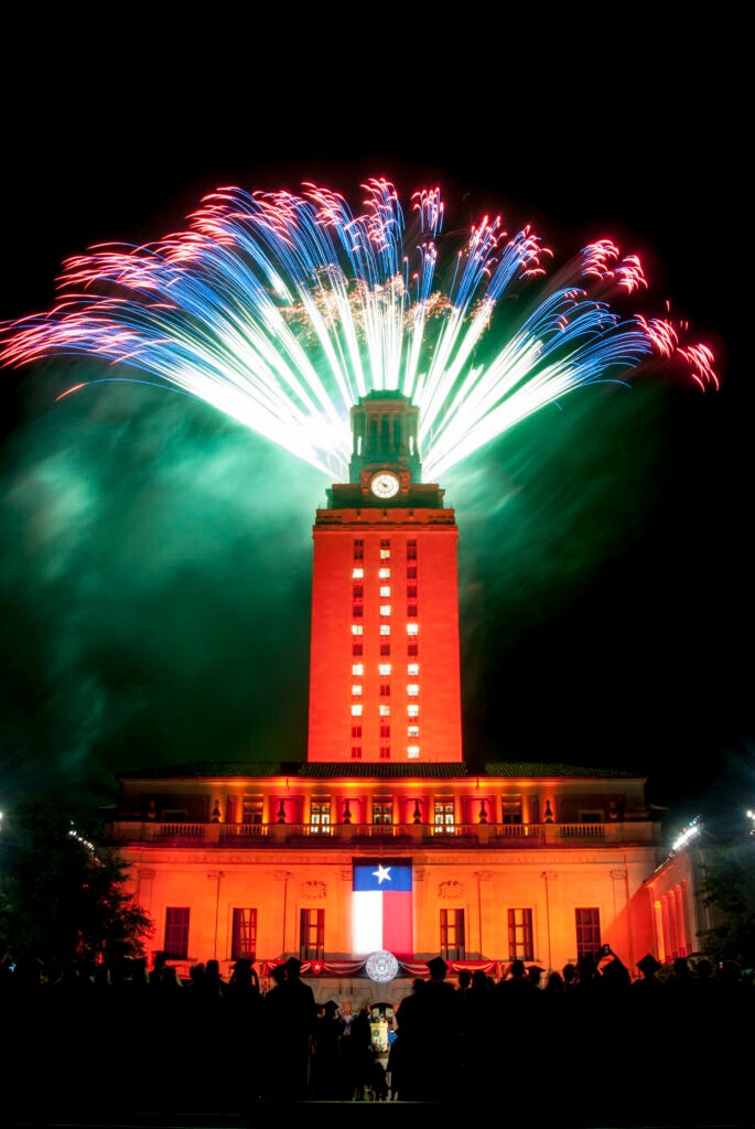 Standing tall at the heart of the Forty Acres, the Tower has long been a symbol of campus pride, resilience and achievement. But the 307-foot monument of stone and steel is more than an architectural icon — it’s the beating pulse of the Longhorn community. Through a carefully choreographed dance of lights and color, it celebrates academic and athletic victories, commemorates University milestones, and marks solemn remembrances. Whether it’s awash in burnt orange after a football win or crowned with fireworks during commencement, the Tower’s glow speaks a language understood by generations of Longhorns.