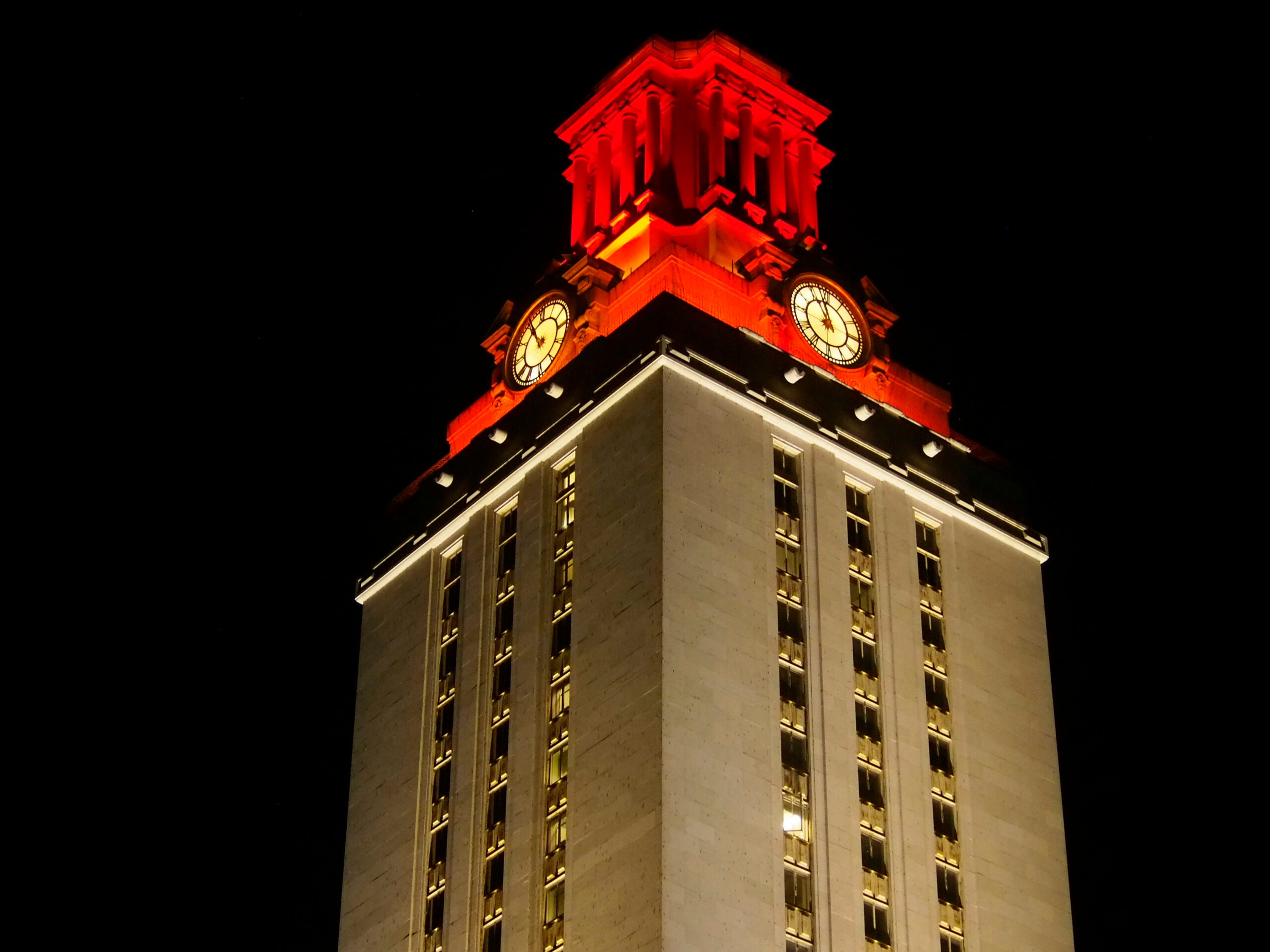 Along with winning their respective conference championships, both Softball and Men’s Swimming and Diving went on to claim the national championship. Each year in honor of NCAA championships, the Tower lights up from top to bottom in burnt orange with a “1” on each side. With these two national championships in hand, as well as seven NCAA top three finishes, UT won the LEARFIELD Directors Cup for the second year in a row, which also prompted a Tower lighting during the first week of the fall semester.