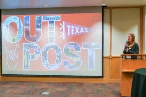 During her speech at the ribbon-cutting ceremony, student leadership board member Jane Goldberg reflected on the impact of UT Outpost.